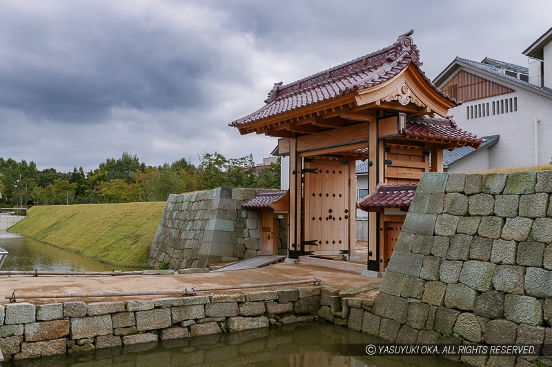 昭和27年(1952)、足羽山にあった福井市立郷土歴史博物館が現在の地に移転。同エリアに外堀や庭園の遺構、福井城の舎人門(とねりもん)が復元されている。高さ約6m、幅約10m、瓦は越前赤瓦を使用しているらしい。