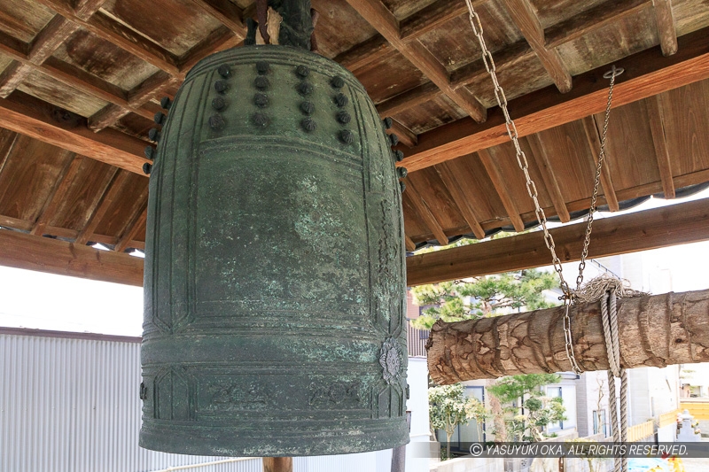 朝倉家当主、朝倉貞景の寄進と伝わる梵鐘。永正3年(1506)の銘がある。