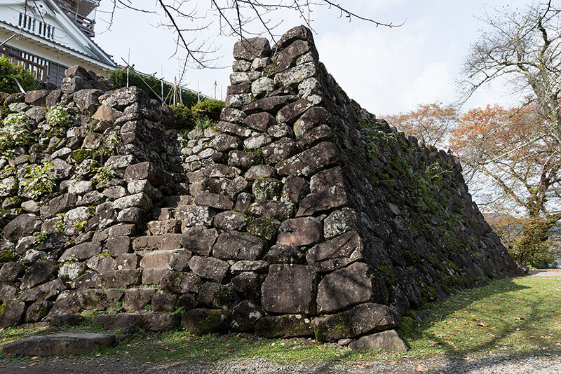 天正3年(1575)に金森長近により標高249mの亀山に築城されたが、安永4年(1775)に焼失し昭和43年(1968)に鉄筋コンクリート造りで復興された天守群と天狗櫓が建っている。石垣は当時のもの。