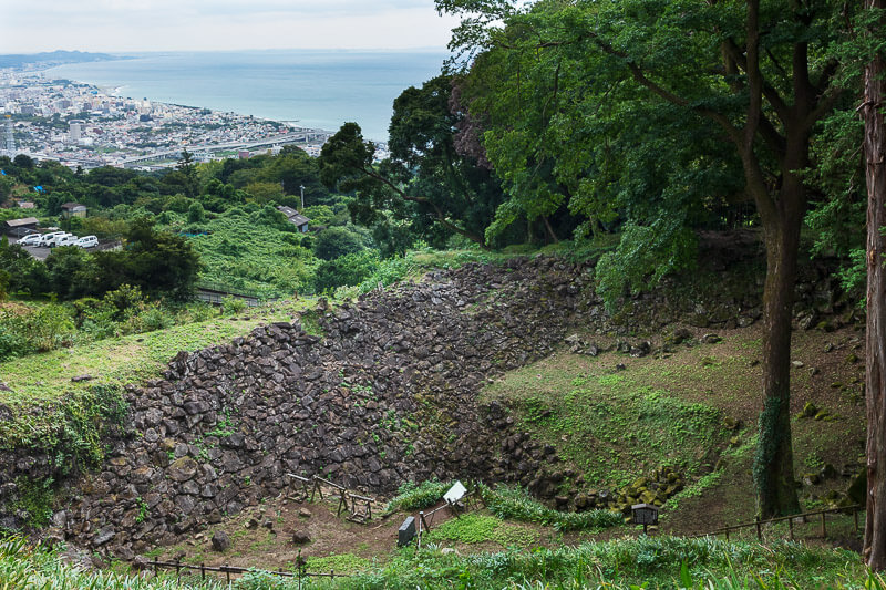 公園として整備された山城で随所で遺構が見やすく整備されていて写真に撮りやすい。随所にちらばる石垣と井戸曲輪、本丸は最低でも見ておきたい。本丸の物見台から、秀吉も見たであろう小田原の眺望をどうぞ。
