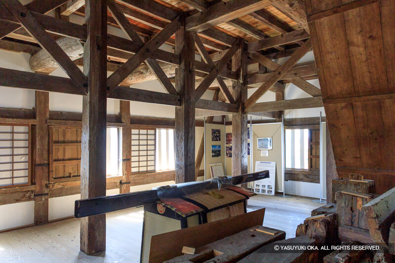 明石城現存櫓内で見られる床や斜交い。