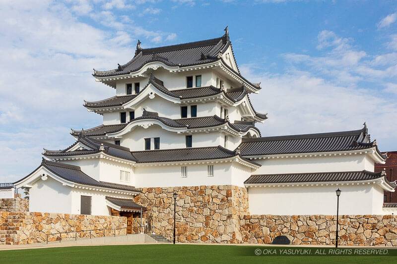 尼崎城の天守は、本来の姿を左右反転(鏡像)させて外観復元されている。