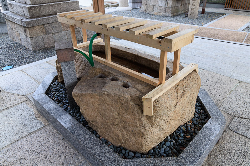 尼崎の寺町、本興寺境内の経塔台石に矢穴石がある。