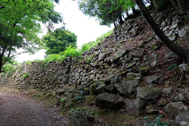 見所はなんといっても本丸周辺部の石垣で、また本丸の石垣に立って城下を眺めてみるのもまた格別です。本丸跡には休憩所(山麓から見える三角屋根)がありますが、屋根だけの構造なので地面の上に座るのが嫌な人は何かシートでも持って行ったほうがいいと思います。