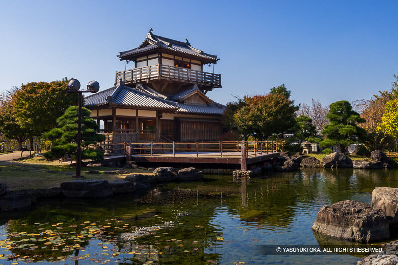 平成元年〜4年までの発掘調査から、枯山水、井戸、虎口などを復元、公園化されている。天守は史実に基づいたものではない。東門(大手門)側の空堀跡が見事。その規模が分かる。公園は毎週火曜日休園。