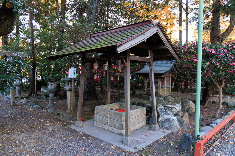 桑名城本丸井戸(高靇神社)本丸井戸。本丸跡の高靇(たかおかみ)神社には井戸があり説明板には「藩祖松平越中守定綱公本丸に一井を掘り高靇神を崇め、本城(桑名城)鎮護・延命長寿子授け・子育てを願い奉祀る」とある。
