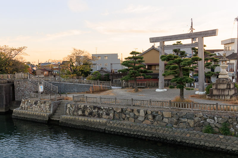 揖斐川の住吉浦付近から伸びるまるで外堀のような川がある。城の堀かどうか確認すべく歩いた。川は荷揚げのための船入堀でその景観がいい。この地は江戸時代初頭、専正寺付近一帯は漁村で、蛤(はまぐり)の貝殻で地面が厚く覆われていた。