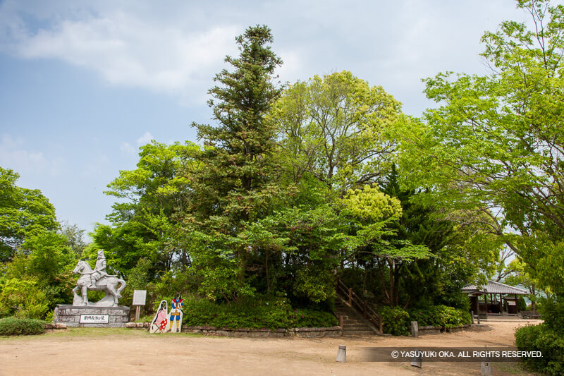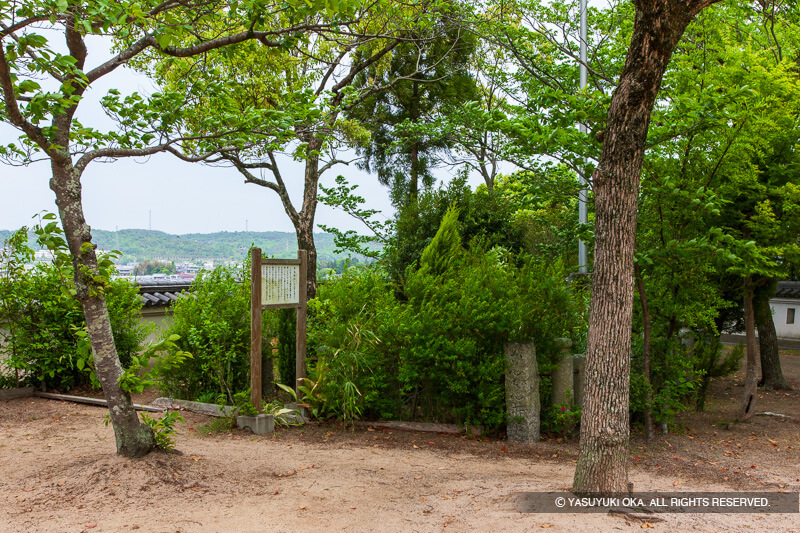 中でも雲龍寺の「別所長治公と照子夫人の首塚」は、見ておきたい(三木市上の丸町9-4)。首実検の後、雲龍寺住職が長治夫妻の首を貰い受け埋葬したと伝わる首塚。首塚のすぐ左に別所長治辞世の句碑、さらに由緒碑があり、これが三木城の外堀の残石を使っているから同時にチェックしておこう。また、その雲龍寺駐車場の東側には広大な空堀跡(公園)もある(いずれも詳しい場所は上記Googleマップ参照)。