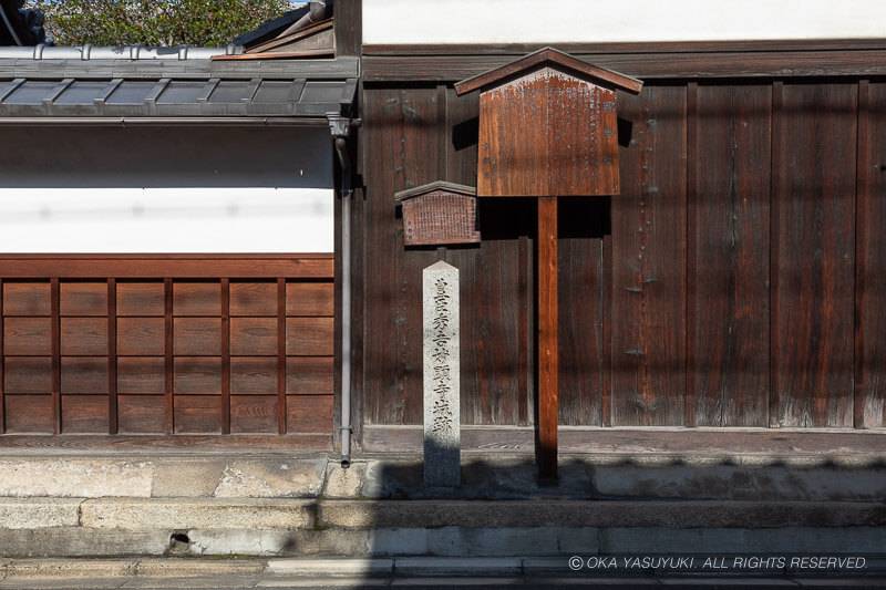 京都という土地は実に重層的に史跡がある。室町幕府を開いた足利尊氏は、二条高倉に御所を置きそこで政務を執った。3代義満の時代に「花の御所」が造営され、政権の中心はそちらに移ったが、13代将軍の義輝は御所の南西、いわゆる「二条御所武衛陣(斯波氏の居館跡)」を本拠とした。後に織田信長が15代将軍、義昭のためにこの地に室町邸(京の御城)を築いている。