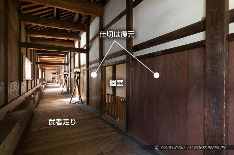 昭和期に後の改編で取り付けられた柱が撤去され仕切が復元されている。