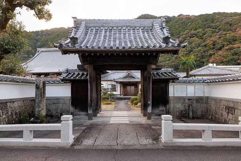 新宮ゆかりの城は新宮城の城下にある。元亀2年(1571)頃に築かれたとされる新宮周防守屋敷と、天正期に新宮氏を破りこの地を領した堀内氏の城、堀内新宮城(堀内屋敷)だ。前者は現本廣寺で新宮城主だった水野家の菩提寺でもある。後者は現全龍寺だ。山門脇には石碑や案内板がある。本廣寺と全龍寺は近い位置にある。日本城郭大系によると、本廣寺に加え全龍寺の三分の一がその屋敷跡で、両者同じ場所に居城を構えたらしい。