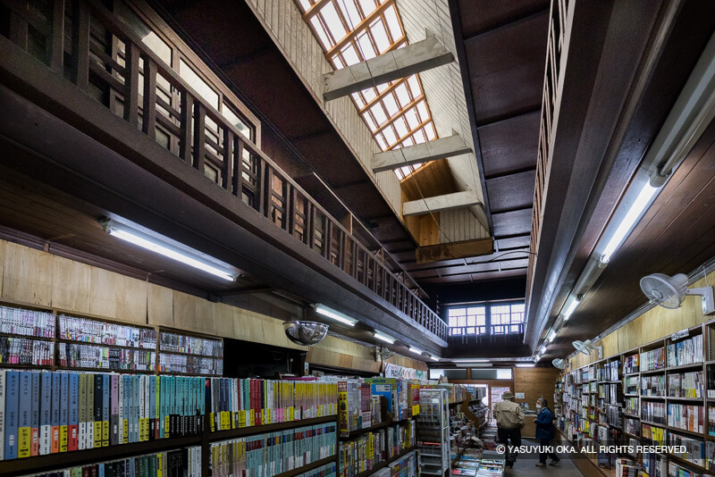 龍野の街並み(有)伏見屋商店の書店内観。内部は回廊が巡らされた非常に珍しい風景。現在は書店が営まれている。