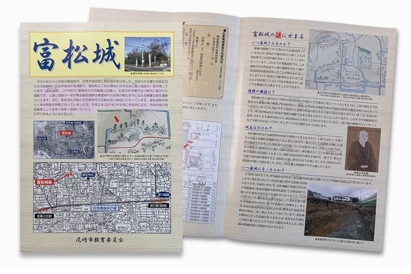 尼崎城本丸跡に建つ尼崎市立歴史博物館で富松城のA4二つ折りのパンフレットがGETできる。尼崎市教育委員会発行。