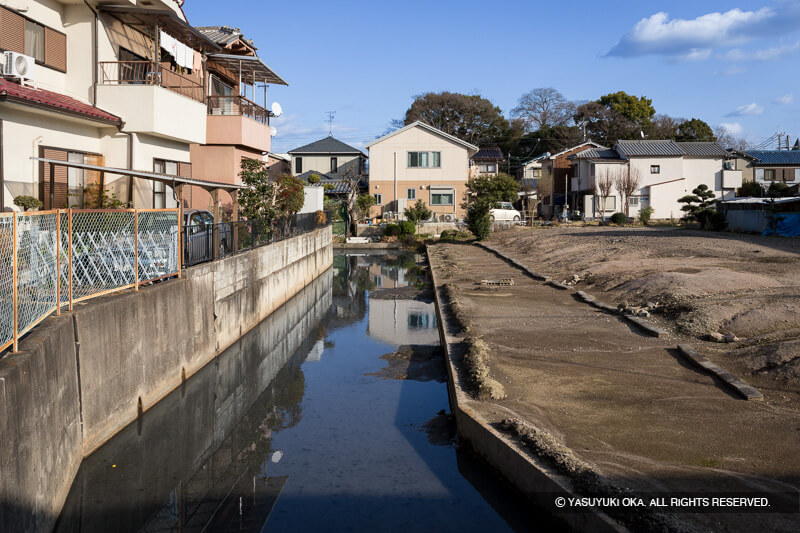 筒井城・菅田比賣神社南東の住宅街に見られる水堀の痕跡