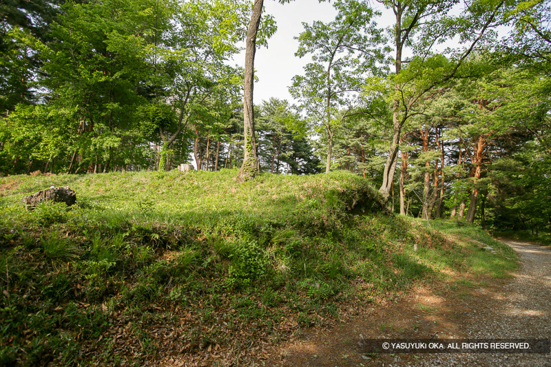 新府城西ノ三之丸と東ノ三之丸を仕切る土塁の南端。