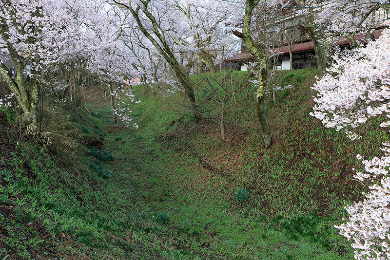 高遠城の各曲輪を仕切っていた空堀。曲輪の周囲には土塁が巡らされ、その上に塀が置かれていた。