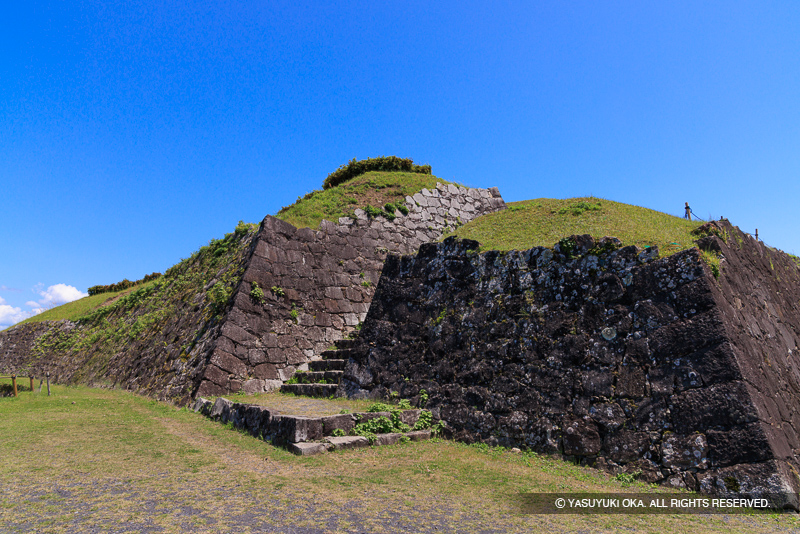 昭和54年(1979)の発掘調査では石垣や瓦が出土し、その後も平成5年(1993)以降、本丸周辺の遺構確認や整備が進められた。平成10年(1998)には熊本県史跡に指定され、さらに平成20年(2008)には国史跡に指定されるなど、文化財としての価値が明確に位置づけられている。