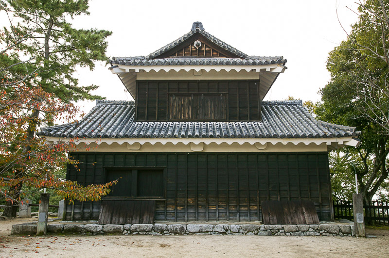 構造的には層塔型である天守は、直線的な破風、最上層の高欄、初層・二層目の腰高下見板、連子窓に付く突揚板など、外観の意匠は幕末再興とは思えぬほど古式。 天明四年に焼失した天守を忠実に再現したのだろうか。ならば、これが復元城跡松山のはじまりとも言える。