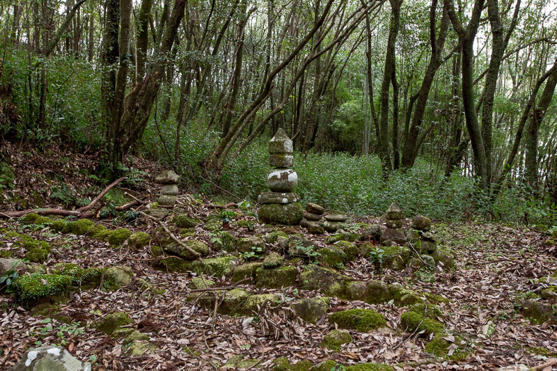 伝長宗我部氏一族・国親の墓岡豊山の北にある谷はもとは寺院があったらしい。その場所に長宗我部氏代々の墓所が残っている。二十数基の墓は大きな五輪塔を使っているといった風情ではなく、非常に小さな墓が無造作に並んでいる。墓地の上段には長宗我部国親の墓(伝)がある。詳しい場所は上記Googleマップ参照のこと。県道384号線からのアクセスとなる。