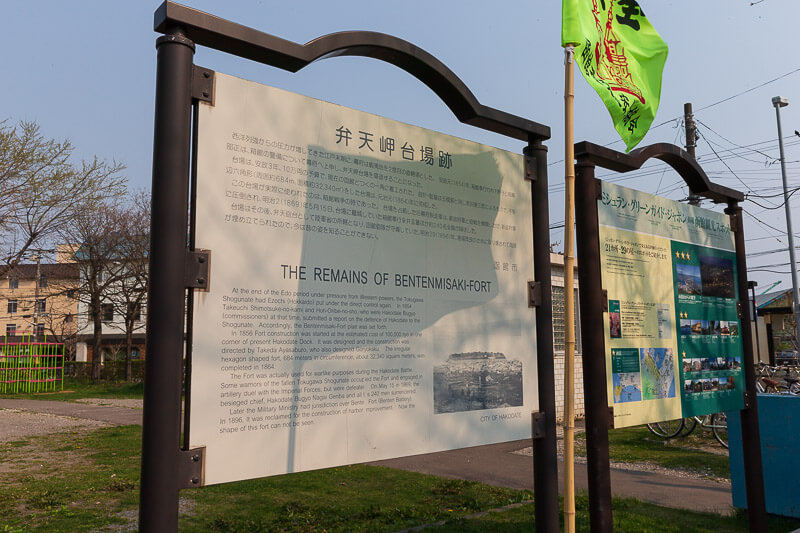 外国船襲来に備えて安政3年(1856)、幕府の手によって10万両の予算で造られた台場。不等編六角形の台場で、実際に使用されたのは函館戦争時。新撰組が降伏した最後の地となった。現在、遺構はなく、標柱と解説板が立っている。