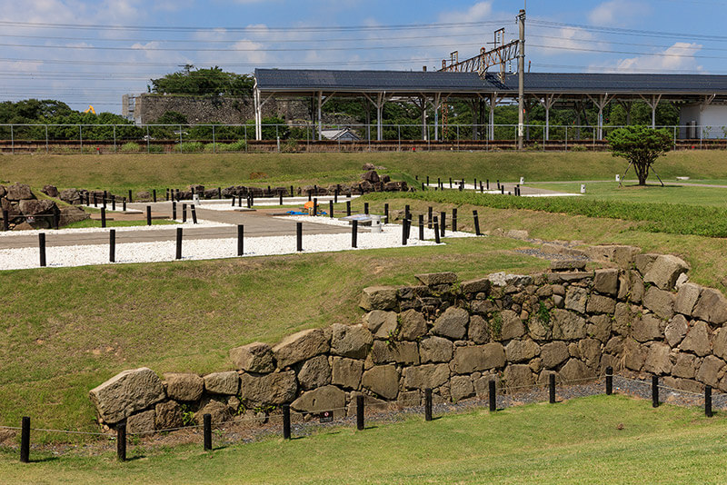 白河小峰城の東へ徒歩散策を。「戊辰薩摩藩戦死者墓」や「旧小峰城太鼓櫓(移築)」、「蛇尾の石垣」がある。また、最近の新たな見どころとして、JR白河駅の南側に道場門跡の虎口がある。石垣とともに発掘整備された虎口でその規模が実感できる。また、さらに通なところといえば、「スローライフゆう工房」。その裏庭に外堀土塁が残っているぞ。頼めば見せてくれるかも(いずれも上記Googleマップ参照)。