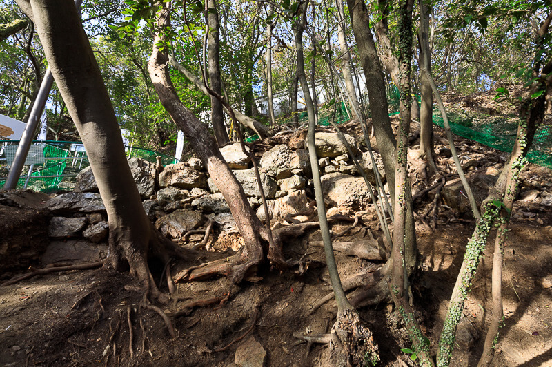 二ノ門下の二段石垣(2018年度出土)。現在もあちこちで当時の石垣の発見が相次ぐ。
