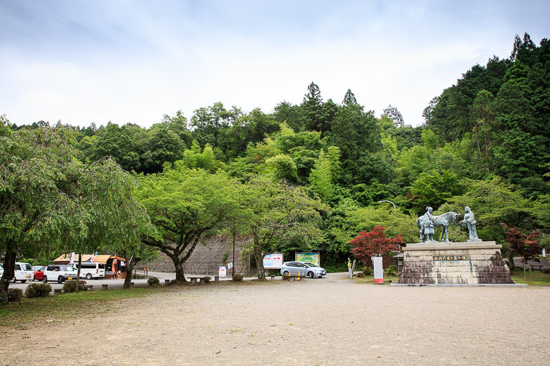 青山氏以降の本丸は、現在城山公園となっており、土霊水とよばれる井戸と、山内一豊と千代の銅像がある。城はそれまで山頂の天守があるところが本丸だったが、青山氏以降は、山麓の殿町の中心に屋敷を設け旧二ノ丸を本丸とし、山頂を桜の丸、松の丸と称したらしい。本丸といえばついつい天守のあるところと思いがちだが、時代によってここ郡上八幡城は、山麓が本丸と変わるから覚えておこう。余談ながら土霊水井戸の現地解説板には、本丸としたのは稲葉氏以降と記載があるが、現地観光協会と日本城郭大系によると青山氏以降で、きっと稲葉氏時代は二ノ丸でその頃から井戸があったということだろう。