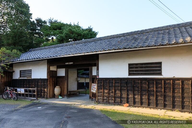 掛川城から南東に少し歩いたところにあるため、見落とすなかれ。城内最大の門で楼門造りの櫓門。オリジナルは、一度、嘉永の地震で倒壊し、安政5年(1858)に再建され、明治になって民間に払い下げられたが火災に遭って焼失した。本来は約50mほど南で、平成5年の発掘調査で基礎固め石などが確認されたが、道路上だったこともあり、現在の地に平成7年6月に復元された。大手門礎石根固めの石のひとつは、復原された大手門をくぐって左手に展示されている。また、移築されていた大手門番所も戻して大手門の北側に合わせて復元されている。