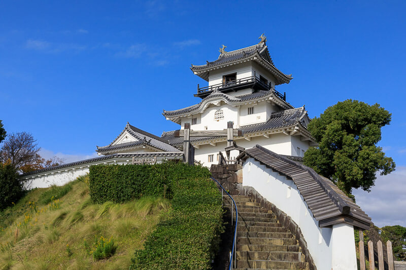 嘉永7年(1854)の安政東海地震では、天守や二の丸御殿など多くの建物が倒壊したが、藩政時代に天守は再建されなかった。現在のものは平成6年(1994)、一豊が高知城を建てる際に「(天守は)掛川のとおりに」と言ったとされることなどを踏まえ、高知城天守や江戸期の絵図などを参考に、戦後では日本初の本格木造天守として完成したものだ。また、城主の居間や藩の政庁、城主の御座所など藩政の中心として機能した二の丸御殿が現存しており、その様式美を見ることができる。そのほか中世の防御の仕組み、三日月堀なども保存整備され、中世から近世への過渡期の城であることが分かる城だ。