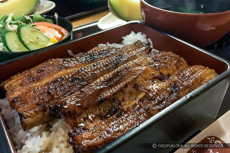 掛川は「うなぎ」の名店が多い。掛川城から近い「うな助」は比較的薄味で、駅に近い「甚八」は味が濃い目と現地で聞いた(甚八は要電話予約)。掛川では、うなぎは背開きだが蒸さないところが多く、どちらかというと関西風だ(写真はうな助)。