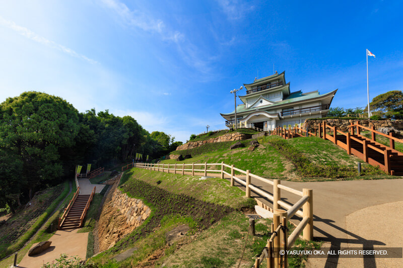 天守閣だけに気を取られずに小牧山の麓を是非散策してほしい。土塁を輪切りにした展示や井戸跡、土塁など見やすく整備されているぞ。