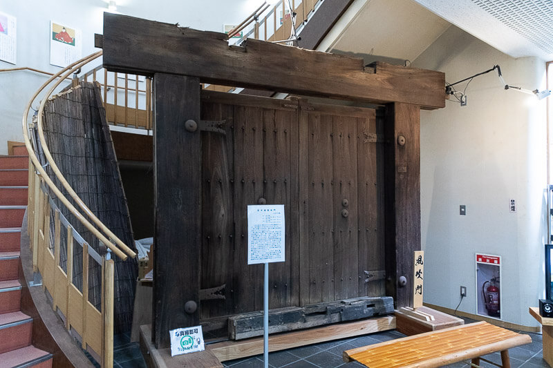 苗木遠山資料館には、現存の風吹門(鏡柱・冠木・門扉)が館内に展示されており、また、苗木城のジオラマ模型があるので、登城前に見ておきたい。なお、風吹門と模型は撮影可。