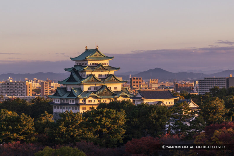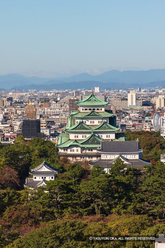 1610(慶長15)年、徳川家康が九男「義直」のために天下普請として外様大名20家に命じて築城に着手し、大阪方への押さえとし僅か4年の歳月で1614(慶長19)年に完成させた。また、織田家ゆかりの清洲から「清洲越し」と言われているように町毎移住させて城下を築き発展させています。以後御三家筆頭として16代にわたり世襲し明治を迎え、幸いに取り壊しを免れ戦災での焼失が惜しまれます。