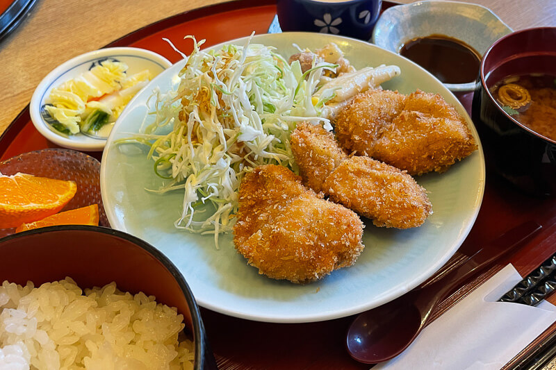 このあたりの名産といえば、西尾のお茶をどうぞ。昼飯処を探すなら城から南東に徒歩4分の「とんかつ 錦 本店」へどうぞ。筆者は知立のS氏の案内で西尾を訪れたが、S氏の祖母の家が近くにあり、幼少の頃この店で食事をした記憶があるそうだ。客の年齢層も高く、トンカツは実にさっぱりとした上品な味わいがある。要するにこのあたりの老舗と言っていい。