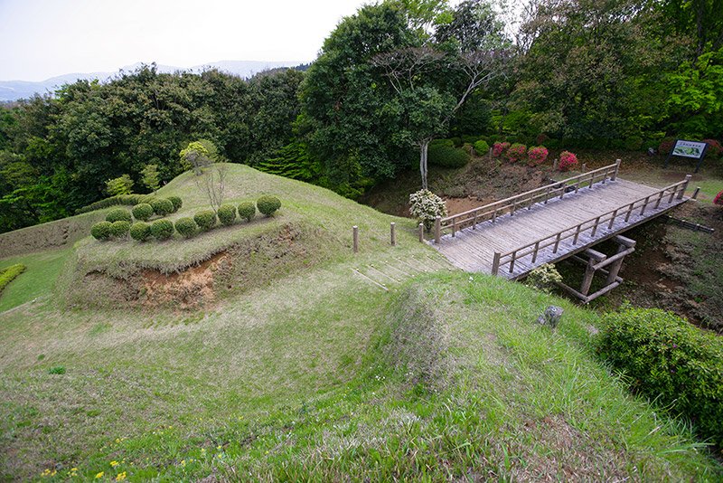 二の丸虎口と西の丸の間にある空堀を跨ぐようにかけられた連絡用の橋(復興)。