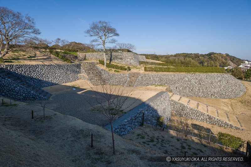本来、門があったところなどには、植木でそれを表すなど、不自然ではない城跡整備で好感が持てる。