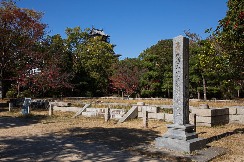 平成13年(2001)3月の芸予地震で、広島城天守閣の鯱が落ちてしまったことがある。この頃、ちょうど広島城を訪れ、鯱が無いというのは、ずいぶんと寂しい天守の絵になったことを覚えている。今、見られるのは地震後に再建された鯱。広島城天守の前に立ったら、最上階の鯱を見てみよう。ズームレンズでもあれば見えるのだが、鯱の腹に「平成13年10月 作人 梶川亮治」と掘られている。これは鬼瓦を作る職人さんの名前だ。姫路城の天守台石垣の填められた文章といい、ズームでしか見えない文字って、情報が埋め込まれているようで、ちょっと面白い。