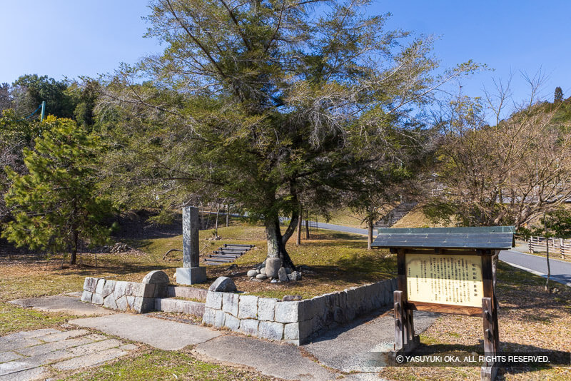 下りコースは、尾崎丸を経て旧本丸を見て後、尾崎丸下まで引き返し、さらに下り、展望台を経て麓に降り「興禅寺跡(郡山公園)」「清神社」「三矢の訓跡碑」「元就火葬場伝承地」を巡り戻ると良い。